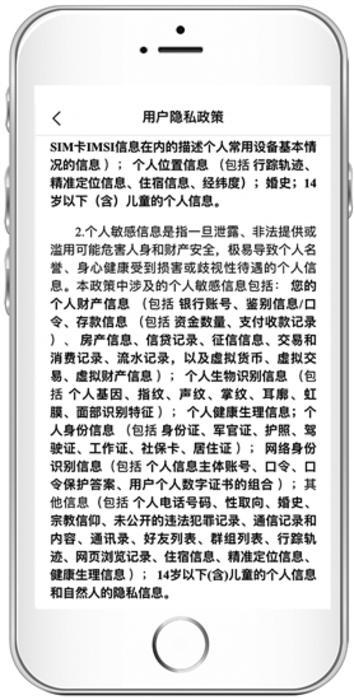 《中國光大銀行手機銀行隱私政策》在個人信息范圍描述的相關條款中,“個人敏感信息”一項中列出的“其他信息”,包括個人電話號碼、性取向、婚史、宗教信仰、未公開的違法犯罪記錄、通信記錄和內(nèi)容、通訊錄、好友列表、群組列表、精準定位信息、網(wǎng)頁瀏覽信息等14項內(nèi)容。