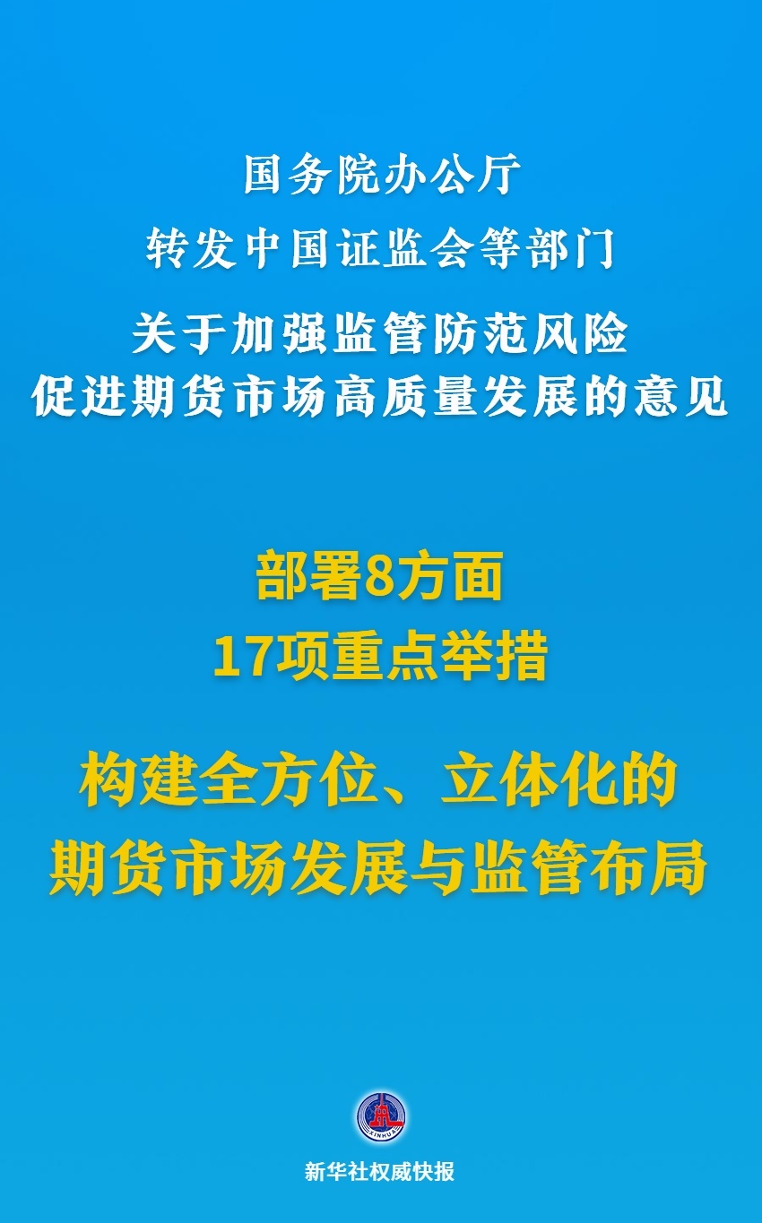 日前,國務(wù)院辦公廳轉(zhuǎn)發(fā)中國證監(jiān)會等部門《關(guān)于加強監(jiān)管防范風(fēng)險促進期貨市場高質(zhì)量發(fā)展的意見》。這一專門針對期貨市場的綜合性文件,系統(tǒng)全面部署8個方面的政策措施,推動構(gòu)建全方位、立體化的期貨市場發(fā)展與監(jiān)管布局。