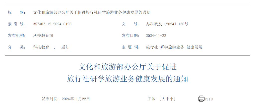 記者11月22日從文化和旅游部獲悉,文化和旅游部辦公廳近日印發(fā)關于促進旅行社研學旅游業(yè)務健康發(fā)展的通知。通知要求,組織開展研學旅游應堅持社會效益與經濟效益相統(tǒng)一,更加注重在提升青少年綜合素養(yǎng)等方面的社會效益。