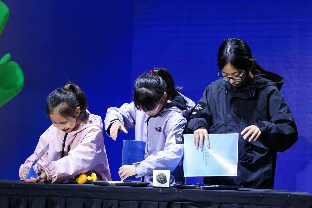 11月23日,小觀眾在浙江杭州舉辦的2024菠蘿科學(xué)獎現(xiàn)場進行科學(xué)實驗。新華社發(fā)