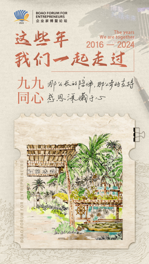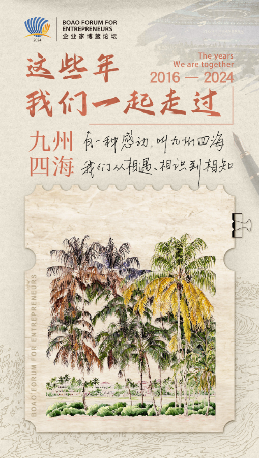 2024年是企業(yè)家博鰲論壇舉辦第九年。九年來,企業(yè)家因?yàn)椤安棥倍嗑勰虾V疄I。凝聚共識(shí),匯聚信心;共商合作,共謀發(fā)展。在各界嘉賓的無私澆灌和培育下,歷經(jīng)多年積淀,企業(yè)家博鰲論壇已逐漸成長成為一棵枝繁葉茂、亭亭如蓋的大樹。每一次吐蕊,都充滿深情;每一枚掛果,都飽含感恩。