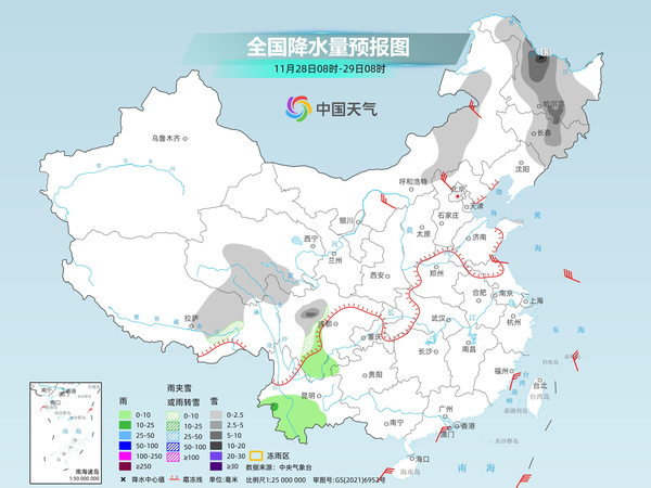 明天,內(nèi)蒙古東部、東北地區(qū)中北部、青海南部、西藏東部、川西高原北部等地部分地區(qū)有小雪或雨夾雪,其中,黑龍江中西部、吉林東部等地部分地區(qū)有中到大雪,黑龍江西北部等地局地暴雪。西南地區(qū)南部等地部分地區(qū)有小雨,其中,云南西南部等地部分地區(qū)有中雨。