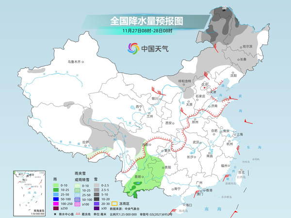 今明天(11月27日至28日)中東部多地氣溫回升乏力,仍將維持偏低狀態(tài),部分地區(qū)最高氣溫還將創(chuàng)今年下半年來新低。同時(shí),華北等地午后陣風(fēng)較強(qiáng),風(fēng)寒效應(yīng)明顯。內(nèi)蒙古東部、東北地區(qū)的強(qiáng)降雪將有所減弱,但部分地區(qū)仍有中到大雪。 中東部大部氣溫持續(xù)低迷 29日起氣溫回升 23日起寒潮自西向東影響我國大部地區(qū),昨天已經(jīng)進(jìn)入降溫核心時(shí)段,19個(gè)省會(huì)、首府、直轄市最低氣溫創(chuàng)今年立秋后新低,最低氣溫0℃線南壓到山東南部、河南中部、湖北北部一帶。 今明天,中東部大部氣溫止跌,但回升乏力,氣溫仍以偏低為主。東北地區(qū)大部最高氣溫維持在零下,華北、黃淮部分地區(qū)最高氣溫也將維持在個(gè)位數(shù)。長江中下游一帶最高氣溫將降至10℃左右,像上海今天最高氣溫只有11℃,或創(chuàng)今年下半年來新低。華南一帶涼意也將顯現(xiàn),多地最高氣溫不足20℃,像廣州今天最高氣溫將降至19℃。公眾需注意保暖,易感人群注意多加防護(hù),避免感冒等疾病的發(fā)生。 同時(shí),對(duì)于華北等地來說,還需注意防范大風(fēng)。今明天由于地面氣壓落差較大,導(dǎo)致午后陣風(fēng)較強(qiáng),風(fēng)寒效應(yīng)顯著。 從后天開始,各地氣溫將有所回升,華北中南部、黃淮、江淮等地最高氣溫將會(huì)重回10℃以上,江漢、江南大部最高氣溫也將回到20℃左右。 不過,未來10天影響我國的冷空氣仍然頻繁,11月30日至12月2日、12月7日前后還有兩股冷空氣南下,帶來氣溫波動(dòng),大家還需留意臨近預(yù)報(bào),注意根據(jù)氣溫變化及時(shí)添衣。 內(nèi)蒙古黑龍江部分地區(qū)仍有中到大雪 西南地區(qū)陰雨雪持續(xù) 寒潮的到來還給內(nèi)蒙古東部、東北地區(qū)等地帶來了強(qiáng)降雪。昨天東北等地的降雪強(qiáng)度將達(dá)到本輪過程的巔峰,昨天08時(shí)至今天06時(shí),內(nèi)蒙古呼倫貝爾和黑龍江大興安嶺、黑河、齊齊哈爾、宜春、鶴崗、佳木斯等局地暴雪或大暴雪,鶴崗市和蘿北、佳木斯湯原局地特大暴雪,黑龍江、內(nèi)蒙古有5個(gè)國家級(jí)氣象觀測(cè)站日降水量突破11月歷史極值。 今明天,東北一帶的降雪整體將有所減弱,不過在內(nèi)蒙古東北部、黑龍江西部和北部等地,還將有中到大雪。除了東北一帶的降雪外,西南地區(qū)也有小雨雪天氣,其他大部地區(qū)則是雨雪稀少。 中央氣象臺(tái)預(yù)計(jì),今天內(nèi)蒙古中東部、東北地區(qū)大部、西藏東部、青海南部、川西高原北部、山西北部等地部分地區(qū)有小雪或雨夾雪,其中,內(nèi)蒙古東北部、黑龍江西部等地部分地區(qū)有中到大雪,黑龍江西北部等地局地暴雪。西南地區(qū)南部等地部分地區(qū)有小到中雨,局地大雨。