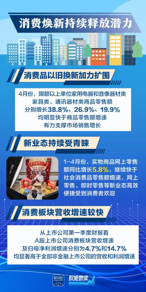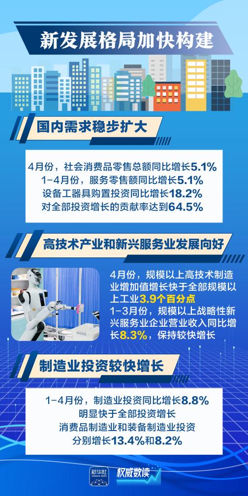 4月份經(jīng)濟(jì)數(shù)據(jù)陸續(xù)出爐,中國經(jīng)濟(jì)頂住壓力穩(wěn)定增長,延續(xù)向新向好發(fā)展態(tài)勢。 新質(zhì)生產(chǎn)力成長壯大、新發(fā)展格局加速構(gòu)建、消費(fèi)“煥新”持續(xù)釋放潛力、中國市場“新意”拉滿吸引全球……跟隨這幾組數(shù)據(jù),一起感受中國經(jīng)濟(jì)“含新量”。