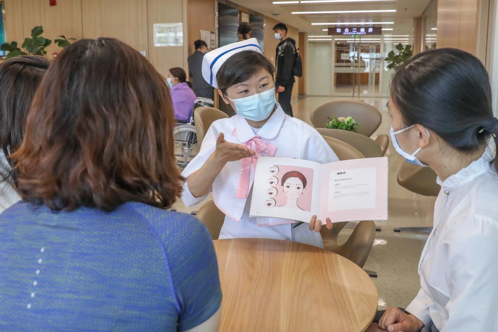 北京協(xié)和醫(yī)院南丁格爾護(hù)理志愿服務(wù)隊(duì)成員正在進(jìn)行醫(yī)美科普宣教。新華社記者 張玉薇 攝