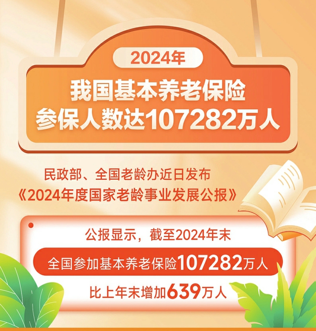 2024年 我國基本養(yǎng)老保險參保人數(shù)達(dá)107282萬人
