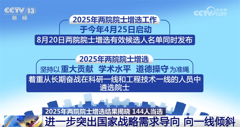 2025年兩院院士增選結果揭曉 144人當選:進一步突出國家戰(zhàn)略需求導向 向一線傾斜