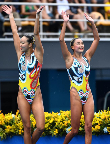 新華社里約熱內(nèi)盧8月16日體育專電(記者王浩宇、李嘉)中國花樣游泳雙人組合黃雪辰/孫文雁在16日的自由自選決賽中發(fā)揮穩(wěn)定獲得銀牌,刷新了中國隊(duì)在該項(xiàng)目上的歷史最佳成績。實(shí)力強(qiáng)大的衛(wèi)冕冠軍伊什琴科/羅馬什娜組合為俄羅斯隊(duì)摘得金牌。