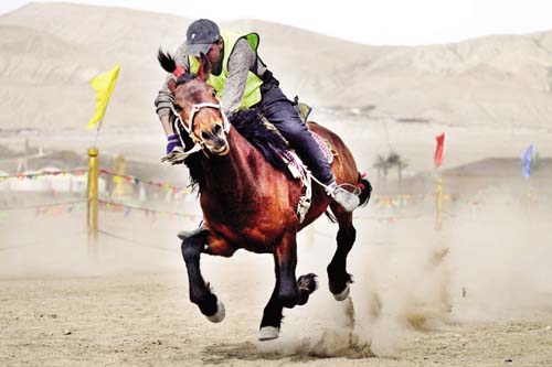 圖一為村民參加叼羊比賽。