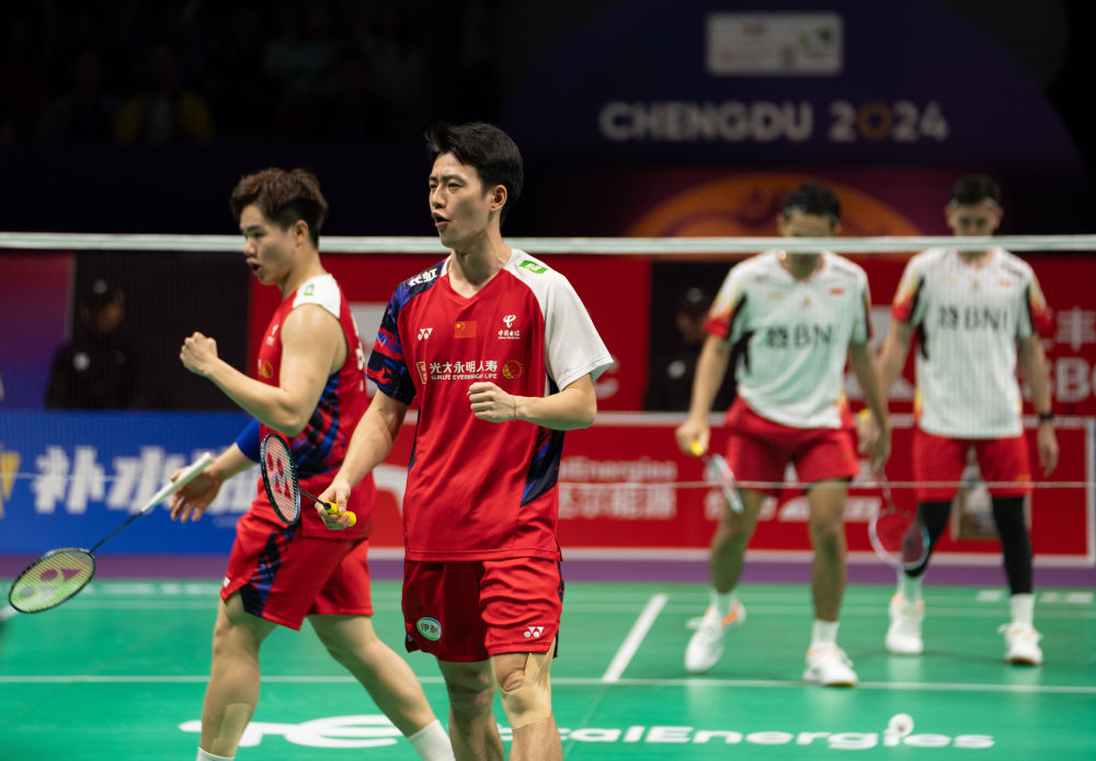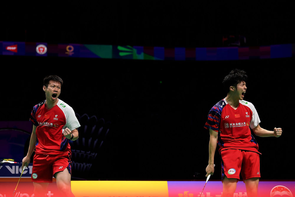 第四場是兩隊(duì)第二雙打何濟(jì)霆/任翔宇、菲克里/毛拉納之間的較量。中國組合充分發(fā)揮了他們網(wǎng)前快速連貫的特點(diǎn),在全場觀眾助威聲中,以21:11、21:15拿下這場決定性勝利。國羽時(shí)隔六年再捧湯杯。