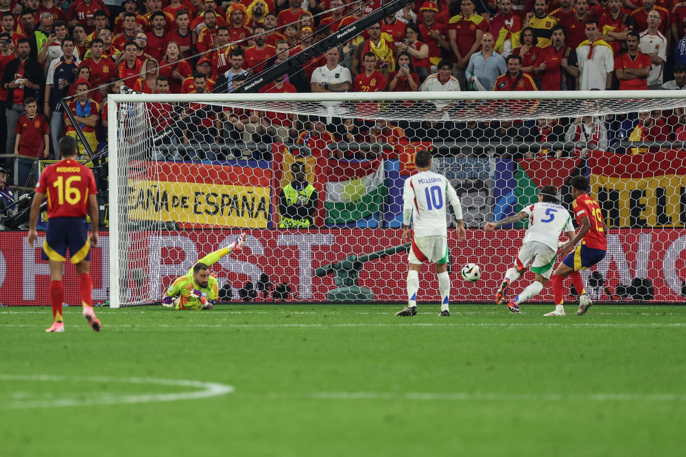 下半場西班牙隊延續(xù)攻勢,威廉姆斯繼續(xù)成為球隊爆點,與他對位的意大利隊邊后衛(wèi)迪洛倫佐苦不堪言。第55分鐘,威廉姆斯邊路傳中,莫拉塔前點頭球攻門被唐納魯馬單掌撲出,但意大利隊后衛(wèi)卡拉菲奧里避閃不及自擺烏龍,“斗牛士”軍團1:0領先。