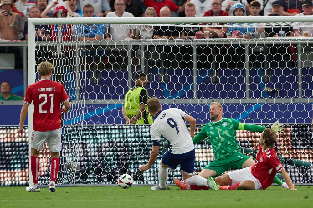 第18分鐘,英格蘭隊沃克下底后倒三角傳中,凱恩門前推射打破僵局。第34分鐘,丹麥隊中場摩頓·尤爾曼轟出一腳無解世界波,皮球如炮彈般擊中立柱內側入網,英格蘭隊守門員皮克福德鞭長莫及。下半場雙方均破門乏術,福登第56分鐘遠射擊中立柱,是英格蘭隊下半場最有威脅的機會。英格蘭隊主教練索斯蓋特早早換下前場三叉戟,本賽季在切爾西發(fā)揮出色的小將帕爾默依舊沒能獲得出場機會。1:1的比分保持到終場。