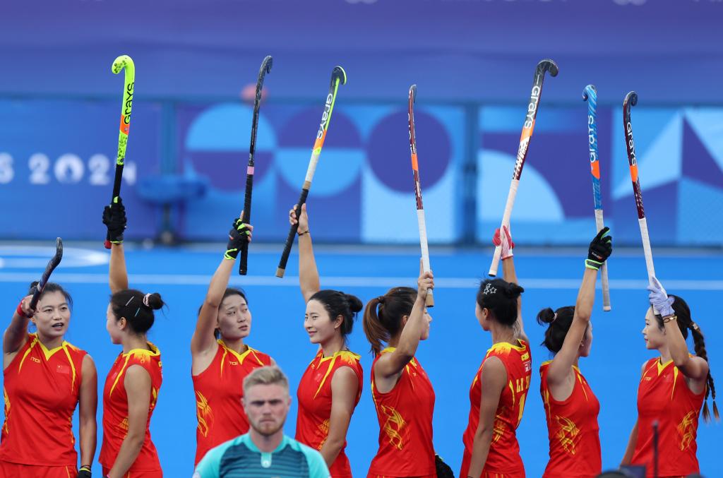 8月7日,中國隊球員在巴黎奧運會女子曲棍球半決賽前。新華社記者 任鵬飛 攝