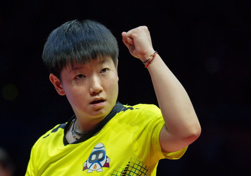 1月1日,深圳大學(xué)隊選手孫穎莎在單打比賽后慶祝勝利。新華社記者 孫非 攝