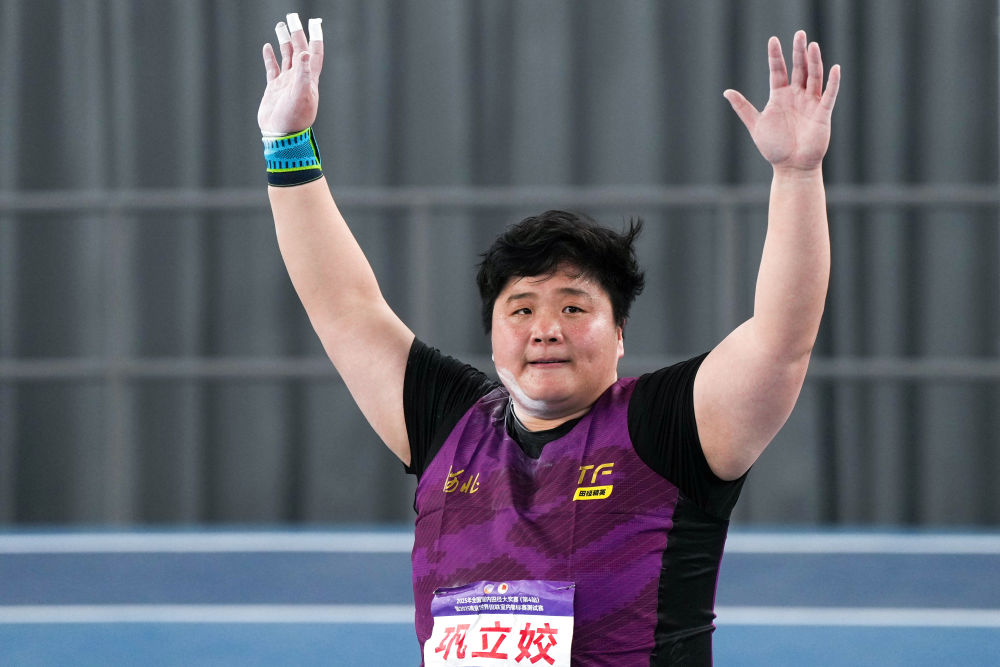 2月23日,河北隊選手鞏立姣在奪冠后向觀眾致意。新華社記者 李博 攝 此次比賽是2025年全國室內(nèi)田徑大獎賽系列賽事的最后一站,也是2025南京世界田聯(lián)室內(nèi)錦標(biāo)賽的測試賽,3月21至23日,室內(nèi)田徑世錦賽將在同一塊場地舉行。本站賽事吸引了不少名將參賽,奧運冠軍鞏立姣以19.04米的成績奪得女子鉛球冠軍,她表示雖然這個成績不是特別理想,但自己會積極備戰(zhàn)室內(nèi)田徑世錦賽,希望屆時能有好的表現(xiàn),“成績至少提升半米”。