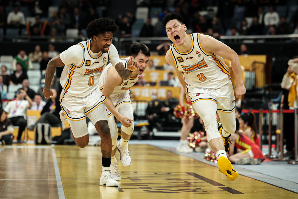 3月5日,山西汾酒隊(duì)球員張寧(右)命中絕殺球后慶祝。新華社記者 江漢 攝 更雪上加霜的是,在這場(chǎng)對(duì)決中廣廈還損失了主力控衛(wèi)孫銘徽,他將缺席四周的比賽。隨后第38輪客場(chǎng)挑戰(zhàn)上海隊(duì),廣廈狀態(tài)依然低迷,主將胡金秋15投4中僅得9分。他們雖然在第四節(jié)瘋狂追分,最終仍以88:92失利,遭遇兩連敗。9日進(jìn)行的第39輪一場(chǎng)比賽中,廣廈終于找回狀態(tài),客場(chǎng)105:98擊敗南京同曦隊(duì),止住連敗。 上周表現(xiàn)最搶眼的隊(duì)伍莫過(guò)于山西隊(duì)。除了絕殺領(lǐng)頭羊外,他們?cè)诘?8輪面對(duì)老牌勁旅廣東隊(duì),以117:115再度兩分險(xiǎn)勝。這兩場(chǎng)比賽都纏斗到最后一刻,山西隊(duì)能在關(guān)鍵時(shí)刻拿下比賽,展示出了隊(duì)伍的成熟。
