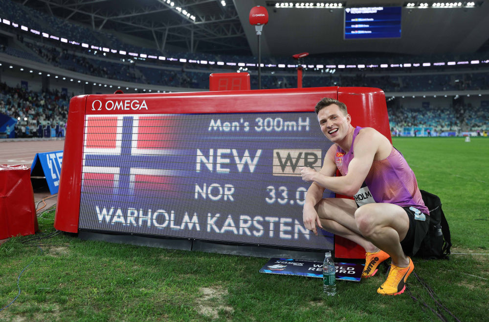 今年3月,世界田聯(lián)宣布300米欄為正式比賽項(xiàng)目并納入官方紀(jì)錄體系。在當(dāng)日廈門站比賽中,瓦霍爾姆一馬當(dāng)先,率先撞線,超越了2021年由他本人創(chuàng)造的男子300米欄世界最佳成績(33秒26)。