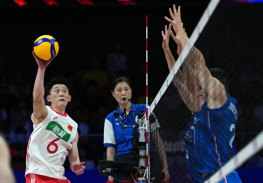 首局比賽,中國(guó)隊(duì)很快進(jìn)入狀態(tài),通過(guò)進(jìn)攻端的變化,有效破解了對(duì)手的網(wǎng)前防守,場(chǎng)面一度陷入膠著。雙方戰(zhàn)至23:23時(shí),俞元泰扣殺得分為中國(guó)隊(duì)迎來(lái)局點(diǎn),塞爾維亞隊(duì)隨后扣球出界,中國(guó)隊(duì)25:23先勝一局。