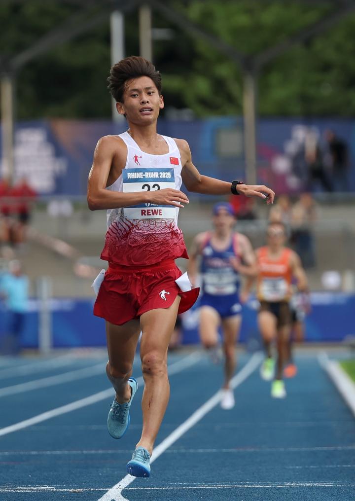 7月23日,王文杰沖過終點(diǎn)線。新華社記者 胡星宇 攝