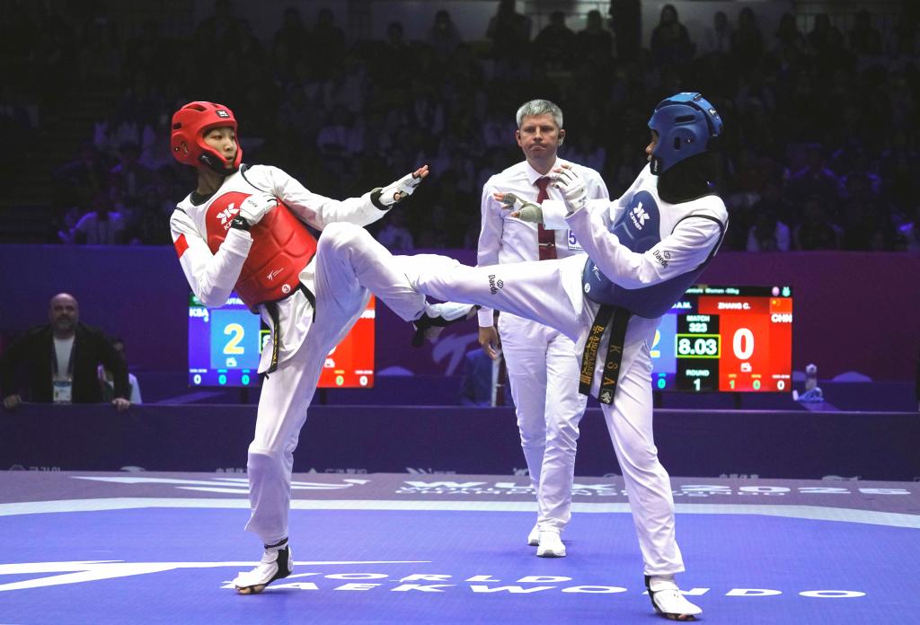 30日進(jìn)行了女子53公斤級(jí)和男子74公斤級(jí)比賽,中國(guó)隊(duì)的蔡兆勛止步男子74公斤級(jí)八強(qiáng),張楚玲闖進(jìn)女子53公斤級(jí)半決賽,但0:2不敵沙特阿拉伯選手阿布塔利布,獲得一枚銅牌。賽后她認(rèn)為自己的首次世錦賽之旅“不及格”,她說:“對(duì)于一些技戰(zhàn)術(shù)的運(yùn)用,感覺做得還是不夠好。第一次和很多高手過招,內(nèi)心還是有壓力的,感覺自己在節(jié)奏上跟她們差得還是有點(diǎn)多,在快節(jié)奏對(duì)抗的時(shí)候有點(diǎn)頂不住?!?/p>