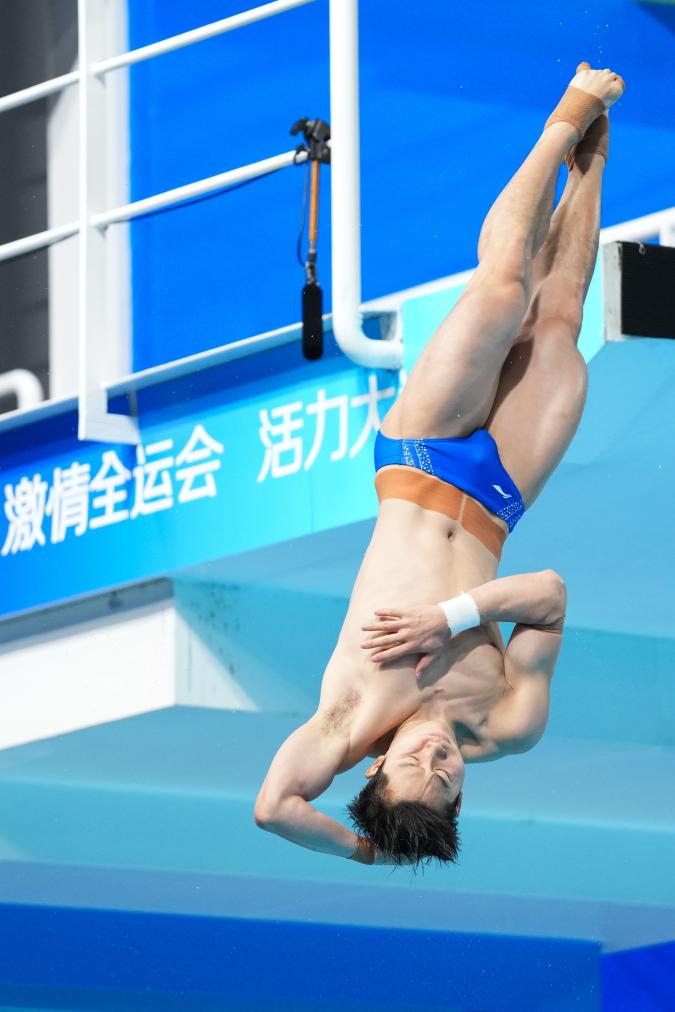 鄭九源在比賽第二、三輪暫列第一后,第四輪出現(xiàn)失誤,最終位列第三?!斑@次比賽非常激烈,感覺(jué)比世錦賽還要緊張?!编嵕旁丛谫惡筇寡裕谇叭炎约旱乃蕉及l(fā)揮出來(lái)了,第四跳是自己的難點(diǎn)有所失誤,但后面兩跳也沒(méi)有放棄,想著把心態(tài)穩(wěn)住,最終還是“咬住了”。