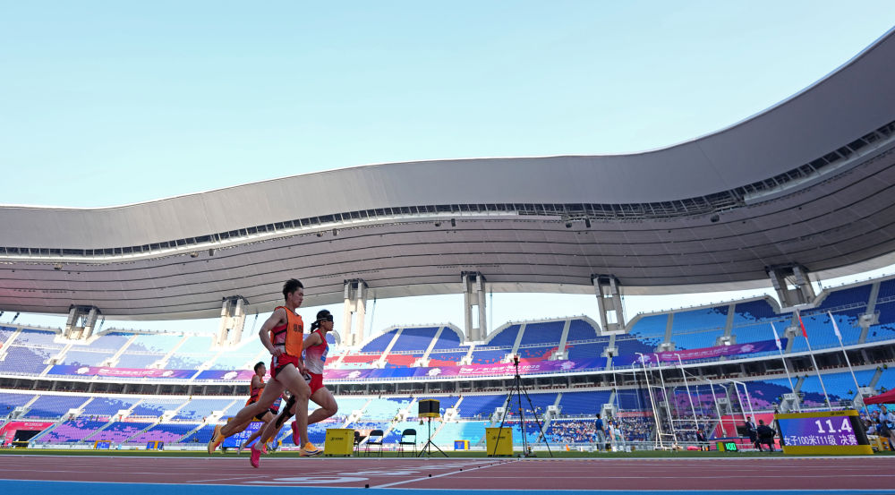 當(dāng)日,伴隨著提振人心的醒獅表演,田徑、聾人籃球等項(xiàng)目都在簡短的開賽儀式后進(jìn)入競賽環(huán)節(jié)。在廣東省奧體中心體育場舉行的田徑比賽傳來捷報(bào),巴黎殘奧會(huì)兩銀得主、山東選手郭芊芊在女子400米T35級比賽中,以超世界紀(jì)錄、破全國紀(jì)錄的1分14秒65率先沖線。兩屆殘奧會(huì)冠軍、陜西隊(duì)的董飛霞在女子鉛球F55級比賽中摘下桂冠。在她的鼓勵(lì)下,陜西隊(duì)當(dāng)天一共獲得6枚田徑金牌。