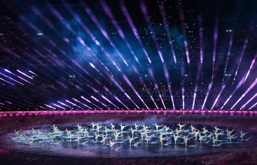11月9日,第十五屆全國(guó)運(yùn)動(dòng)會(huì)開幕式在廣東奧林匹克體育中心舉行,圖為演員在開幕式現(xiàn)場(chǎng)表演。新華社記者 燕雁 攝