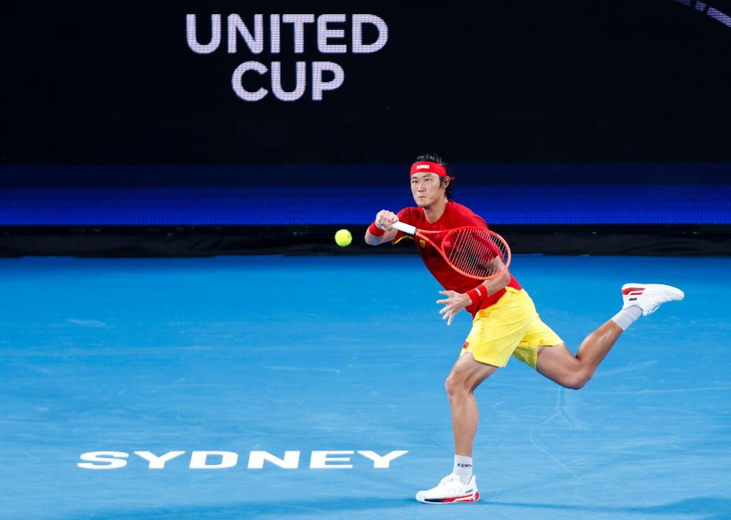 1月4日,中國(guó)隊(duì)選手張之臻在男子單打比賽中回球。新華社記者 馬平 攝