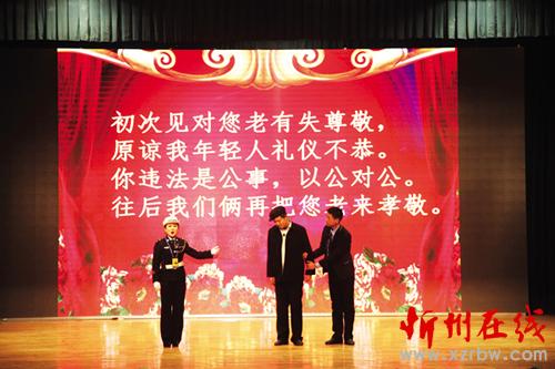 1月27日至29日,偏關(guān)縣公安局交警大隊(duì)交通安全文藝宣傳隊(duì)在隊(duì)長(zhǎng)們的帶領(lǐng)下,先后走進(jìn)市實(shí)驗(yàn)中學(xué)、市客運(yùn)中心、國(guó)家電網(wǎng)忻州供電分公司進(jìn)行了三場(chǎng)演出,用自編自導(dǎo)自演、群眾喜聞樂(lè)見(jiàn)的“漫翰調(diào)”、“二人臺(tái)”、北路梆子、民歌等一系列極具地域文化特色的地方小戲、說(shuō)唱歌舞等曲藝形式進(jìn)行宣傳演出,贏得滿堂喝彩,場(chǎng)場(chǎng)掌聲雷動(dòng)。作為春節(jié)回家路上的一道文化盛宴,這次春節(jié)前的平安出行警示教育“送安全下鄉(xiāng)”巡演是我市公安交警精心策劃、編排的春運(yùn)交通安全宣傳行動(dòng)之一。28日,市客運(yùn)中心人頭攢動(dòng),熙熙攘攘,大廳外懸掛的橫幅標(biāo)語(yǔ)“守護(hù)您的平安出行,保障道路安全暢通是每一位交警的神圣職責(zé)!”格外醒目。候車大廳里,暖意融融,市公安局交警支隊(duì)組織的春運(yùn)交通安全文藝演出正在進(jìn)行,交警版的民間小調(diào)《拜大年》、小品《警鐘聲聲》、雙簧《二愣子》等節(jié)目令人賞心悅目、捧腹不止。在歡笑之余,提醒和教育廣大群眾自覺(jué)抵制不文明、不安全交通行為,觀看演出的旅客和客車司機(jī)紛紛感慨,這樣的宣傳教育生動(dòng)形象,人人愛(ài)看且耐人尋味,警示作用很大。