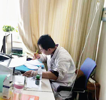 左手打點(diǎn)滴 右手寫(xiě)病歷
