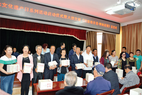 2016年6月11日是我國第11個文化遺產(chǎn)日,各地都以不同的方式舉行紀(jì)念活動。也正是在這一天,神池縣的紀(jì)念活動別具一格,除了常規(guī)的紀(jì)念活動之外,神池縣委宣傳部、縣文化局還舉辦了由山西文化學(xué)者、忻州日報社高級編輯楊峻峰主編的大型文集《國家級非物質(zhì)文化遺產(chǎn)·神池道情》的首發(fā)儀式。該系列圖書被市委宣傳部、省委宣傳部列為重點文藝圖書進(jìn)行扶持。神池縣郵政局還為此首發(fā)式發(fā)行了紀(jì)念封,在首發(fā)儀式現(xiàn)場加蓋郵戳?!渡癯氐狼椤废盗袌D書的出版,對于保護(hù)、傳承、發(fā)揚(yáng)道情文化有著重大的意義,這天對于許多唱道情、愛道情的道情人來說,更像是他們的一場狂歡。