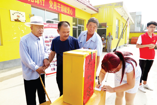 8月7日,“忻州愛心公益行動”團(tuán)隊一行一百多人,穿著統(tǒng)一的紅馬甲,一大早就出發(fā),驅(qū)車來到了距忻州市區(qū)十幾公里的蘭村鄉(xiāng)晏村。剛進(jìn)村委會大院,就看到了等候著的宿香玲一家以及鄉(xiāng)政府、村委會的工作人員。“關(guān)愛貧困生,共筑大學(xué)夢”,紅色醒目的條幅傳遞出了大家此行的目的和心聲。此次,“忻州愛心公益行動”團(tuán)隊不僅為貧困學(xué)生宿香玲一家?guī)砹松钣闷泛腿沼闷?,而且送來了資助宿香玲完成大學(xué)學(xué)業(yè)的善款3萬余元。當(dāng)天晏村村委會黨員干部們也主動牽頭,開展“兩學(xué)一做”先鋒行、黨員干部獻(xiàn)愛心活動,現(xiàn)場為宿香玲籌得善款930元。新希望學(xué)校代表也為宿香玲一家送來了米面油等生活用品以及1000元現(xiàn)金。