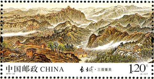 中國(guó)萬里長(zhǎng)城是世界上修建時(shí)間最長(zhǎng)、工程量最大的冷兵器戰(zhàn)爭(zhēng)時(shí)代的國(guó)家軍事性防御工程,是中華民族的古建瑰寶,凝聚著我們祖先的血汗和智慧,是中華民族的象征和驕傲。長(zhǎng)城有極高的旅游觀光價(jià)值和歷史文化意義,是中華民族古老文化的豐碑和智慧結(jié)晶,象征著中華民族的血脈相承和民族精神。1961年,長(zhǎng)城被列為國(guó)家級(jí)重點(diǎn)文物保護(hù)單位,1987年,被列為世界文化遺產(chǎn),2002年,被列為世界新七大奇跡。1984年,鄧小平、習(xí)仲勛作出“愛我中華,修我長(zhǎng)城”的題詞,2006年,國(guó)務(wù)院頒布了《長(zhǎng)城保護(hù)條例》。2015年,習(xí)近平總書記、李克強(qiáng)總理對(duì)長(zhǎng)城保護(hù)工作作出了重要批示。今年,為紀(jì)念《長(zhǎng)城保護(hù)條例》頒布10周年,中國(guó)郵政專門發(fā)行了《長(zhǎng)城》特種郵票,一套九枚,分別為:關(guān)山滄海、薊遼天塹、燕趙雄風(fēng)、京畿屏障、三晉重關(guān)、長(zhǎng)河飛龍、高原北望、大漠關(guān)城、絲路古道,總面值13.2元。全套9枚郵票中,山西有兩枚長(zhǎng)城郵票。第5枚“三晉重關(guān)”、第6枚“長(zhǎng)河飛龍”展現(xiàn)了山西十幾處長(zhǎng)城景點(diǎn),成為全國(guó)境內(nèi)長(zhǎng)城入選最多的省份。長(zhǎng)城景點(diǎn)濃縮方寸郵票之中,姿態(tài)萬千,各具特色。郵票色彩豐富,設(shè)計(jì)精美,充分體現(xiàn)出了長(zhǎng)城的雄偉壯觀。