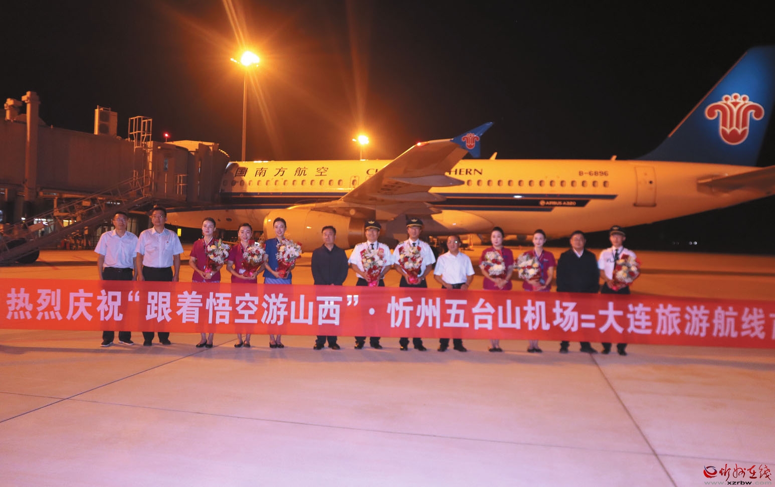 9月9日晚22時10分,滿載著114名旅客的南航CZ8827航班緩緩降落在五臺山機場,標志著“跟著悟空游山西”忻州五臺山機場—大連旅游航線成功首航,這也是該機場本年度開通的第12條航線。