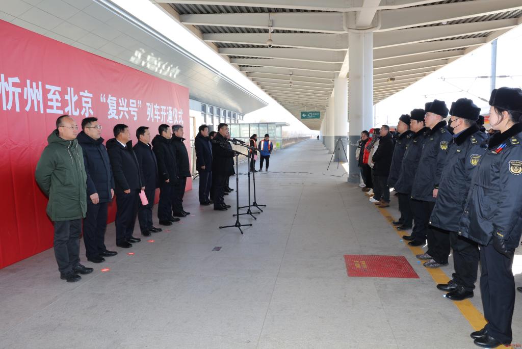 1月14日下午14點(diǎn)51分,由忻州西站始發(fā)、終到北京北站的G2510次“復(fù)興號(hào)”動(dòng)車組列車正式開行。市委書記朱曉東宣布列車開通。市委副書記、市長李建國,中國鐵路太原局集團(tuán)有限公司黨委委員、紀(jì)委書記張立君分別致辭祝賀。市委常委、秘書長溫建軍,市政府秘書長張艮生,市交通運(yùn)輸、文旅部門負(fù)責(zé)人出席。副市長孟宏斌主持開通儀式。