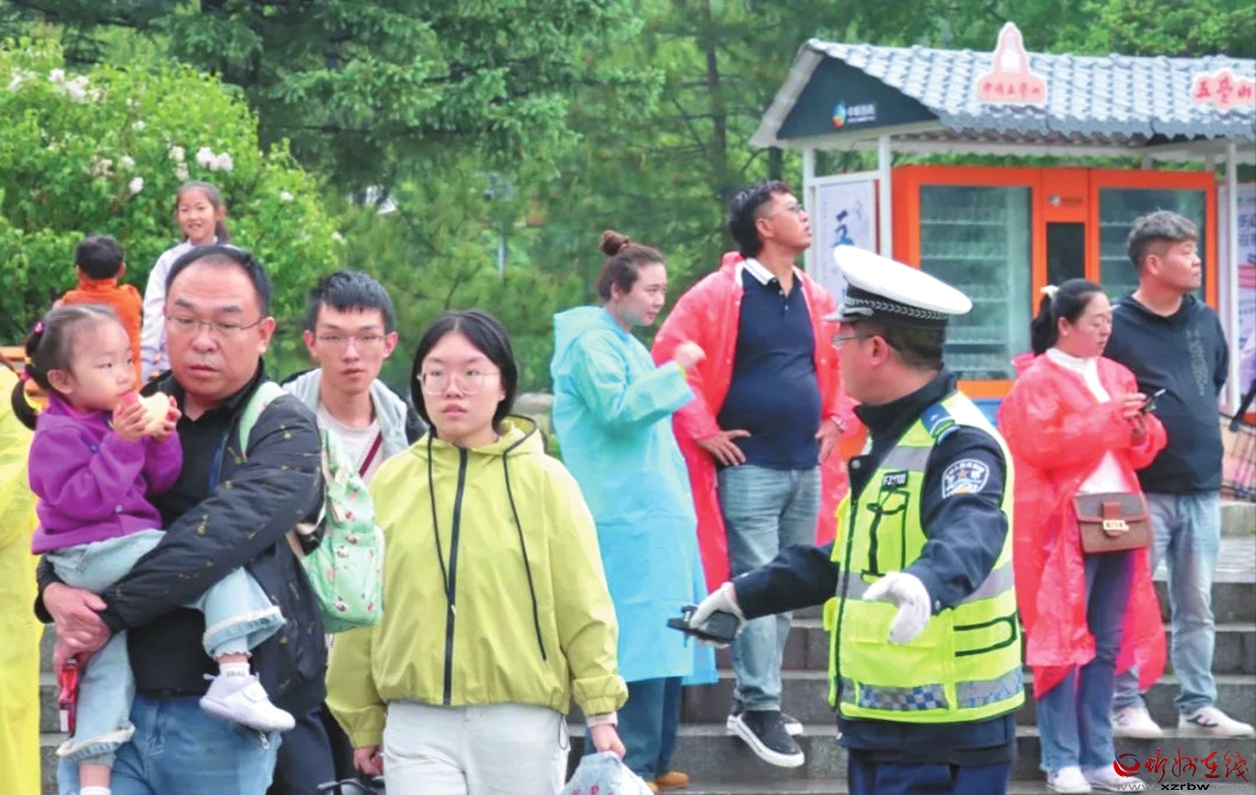 端午假期第二日,夏雨潤澤后的五臺山遠(yuǎn)山空濛、煙雨如畫,景區(qū)再掀旅游熱潮。為高效應(yīng)對客流高峰,提升游客游覽體驗,景區(qū)公安、交警、綜合執(zhí)法等工作人員全員在崗,從交通疏導(dǎo)、秩序維護到便民服務(wù)等多個方面嚴(yán)格落實保障措施,以暖心服務(wù)和責(zé)任擔(dān)當(dāng)為游客保駕護航。