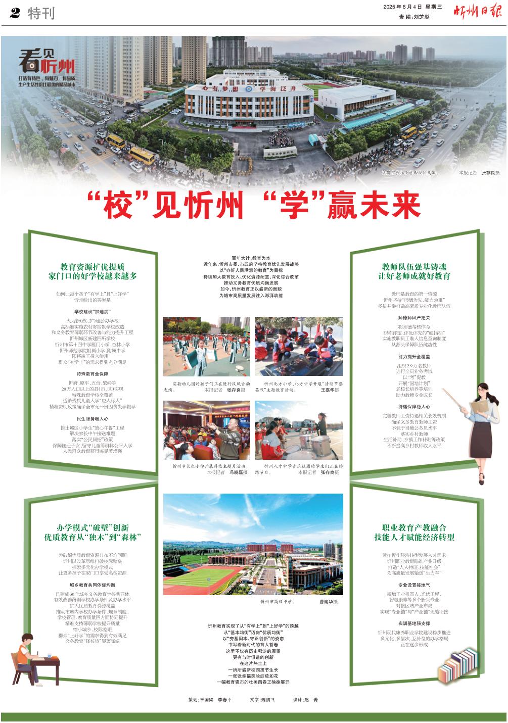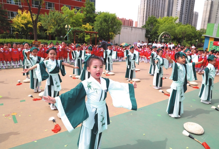 實(shí)驗(yàn)幼兒園的孩子們正在進(jìn)行漢風(fēng)古韻表演。 本報(bào)記者 張存良攝 百年大計(jì),教育為本 近年來(lái),忻州市委、市政府堅(jiān)持教育優(yōu)先發(fā)展戰(zhàn)略 以“辦好人民滿意的教育”為目標(biāo) 持續(xù)加大教育投入、優(yōu)化資源配置、深化綜合改革 推動(dòng)義務(wù)教育優(yōu)質(zhì)均衡發(fā)展 如今,忻州教育正以嶄新的面貌 為城市高質(zhì)量發(fā)展注入澎湃動(dòng)能 忻州教育實(shí)現(xiàn)了從“有學(xué)上”到“上好學(xué)”的跨越 從“基本均衡”邁向“優(yōu)質(zhì)均衡” 以“夯基固本、守正創(chuàng)新”的姿態(tài) 書寫著新時(shí)代的育人答卷 這里不僅有歷史積淀的厚重 更有與時(shí)俱進(jìn)的創(chuàng)新 在這片熱土上 一所所嶄新校園拔節(jié)生長(zhǎng) 一張張幸福笑臉綻放如花 一幅教育強(qiáng)市的壯美畫卷正徐徐展開