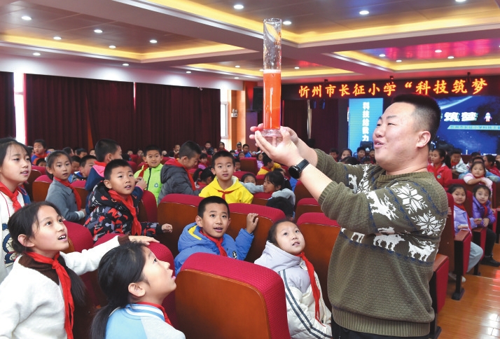 忻州市長(zhǎng)征小學(xué)開展科技主題月活動(dòng)。本報(bào)記者 馮曉磊攝 教師隊(duì)伍強(qiáng)基鑄魂讓好老師成就好教育 教師是教育的第一資源 忻州堅(jiān)持“師德為先、能力為重” 多措并舉打造高素質(zhì)專業(yè)化教師隊(duì)伍 師德師風(fēng)嚴(yán)把關(guān) 將師德考核作為 職稱評(píng)定、評(píng)優(yōu)評(píng)先的“硬指標(biāo)” 實(shí)施教職員工準(zhǔn)入信息查詢制度 從源頭保障隊(duì)伍純潔性 能力提升全覆蓋 組織2.9萬(wàn)名教師 進(jìn)行全員業(yè)務(wù)考試 以“考”促教 開展“國(guó)培計(jì)劃” 名校長(zhǎng)培養(yǎng)等培訓(xùn) 助力教師專業(yè)成長(zhǎng) 待遇保障穩(wěn)人心 完善教師工資待遇相關(guān)長(zhǎng)效機(jī)制 確保義務(wù)教育教師工資 不低于當(dāng)?shù)毓珓?wù)員水平 落實(shí)鄉(xiāng)村教師 生活補(bǔ)助、鄉(xiāng)鎮(zhèn)工作補(bǔ)貼等政策 不斷提高鄉(xiāng)村教師收入水平