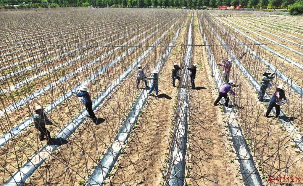 靜樂縣無絲豆角豐潤村種植基地內,農民們正在加緊給豆角搭架子。本報記者 宮愛文攝