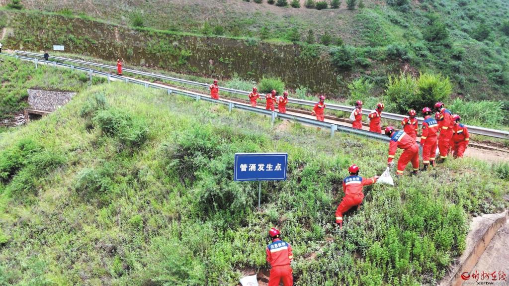 防汛演練現(xiàn)場(chǎng)。楊成林?jǐn)z