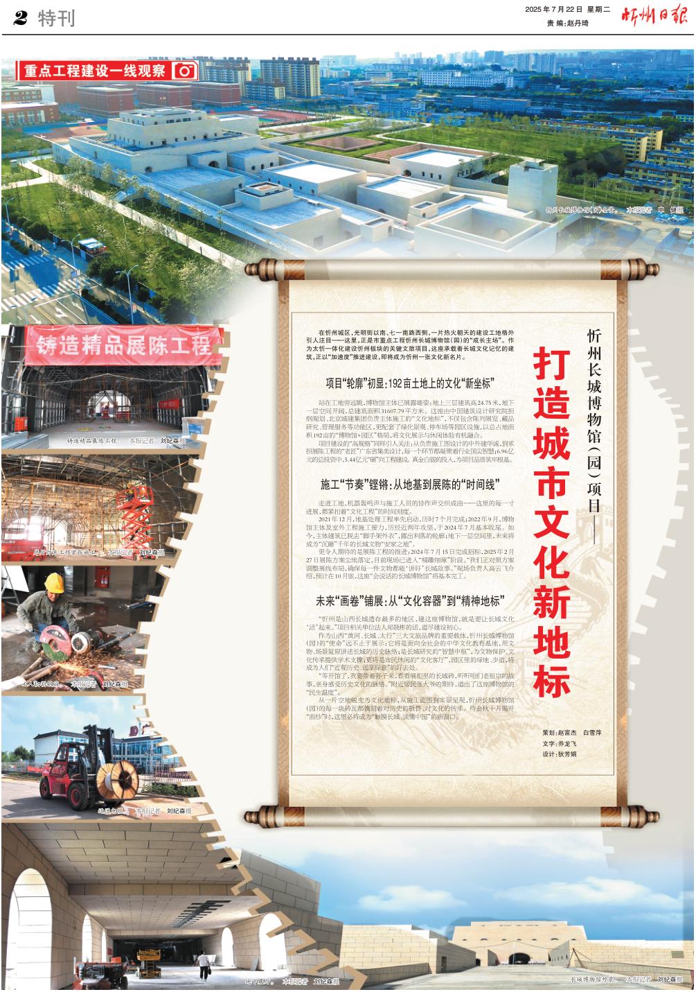 從一片空地蛻變?yōu)槲幕貥?biāo),從施工藍(lán)圖到實景呈現(xiàn),忻州長城博物館(園)的每一塊磚瓦都鐫刻著對歷史的敬畏、對文化的傳承。待金秋十月揭開“面紗”時,這里必將成為“觸摸長城、讀懂中國”的新窗口。