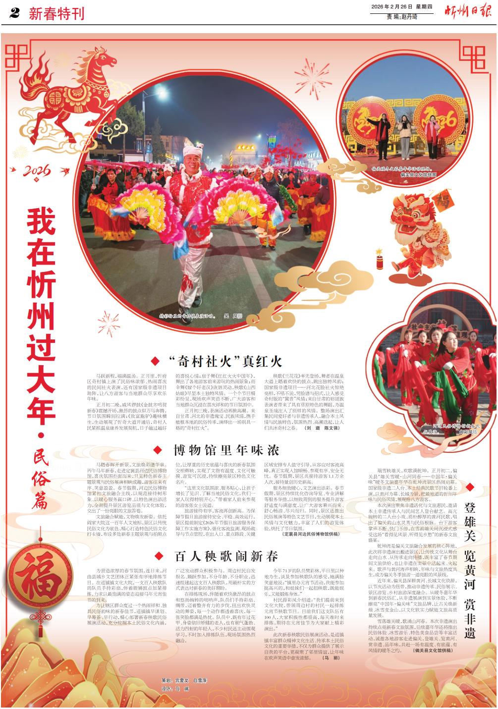 近年來,偏關(guān)縣深耕黃河、長(zhǎng)城文化資源,以節(jié)慶活動(dòng)為紐帶,推動(dòng)非遺傳承、民俗展示、景區(qū)游覽、鄉(xiāng)村旅游深度融合。從暖冬嘉年華到新春民俗匯,從非遺展演到實(shí)景體驗(yàn),不斷擦亮“中國(guó)年·偏關(guān)味”文旅品牌,讓古關(guān)煥新顏、冰雪變金山,以文化軟實(shí)力賦能文旅高質(zhì)量發(fā)展。