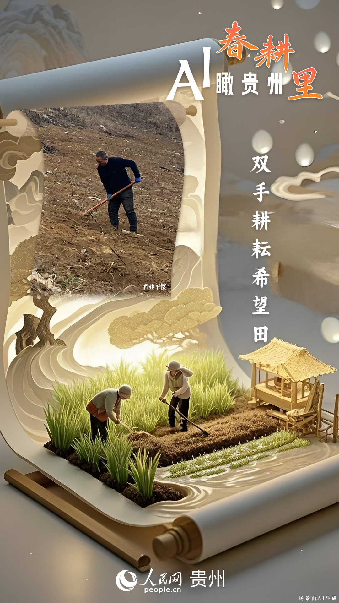 春回大地,萬(wàn)物復(fù)蘇,黔地山川間正上演著一場(chǎng)生機(jī)勃勃的春耕盛景。傳統(tǒng)農(nóng)耕與現(xiàn)代科技在這里交織,描繪出一幅幅充滿希望的畫(huà)卷。 春耕不僅是農(nóng)時(shí)的序曲,更是科技與土地對(duì)話的現(xiàn)場(chǎng)。在貴州這片喀斯特地貌與民族文化交織的土地上,春耕正經(jīng)歷一場(chǎng)靜默的變革:無(wú)人機(jī)掠過(guò)千年梯田,算法解析紅壤墑情,覆膜機(jī)織就“智能外衣”,而彎腰勞作的農(nóng)人,依然用繭手傳遞著古老農(nóng)耕文明的溫度。 本期跟隨AI一起描繪貴州春耕里的故事。
