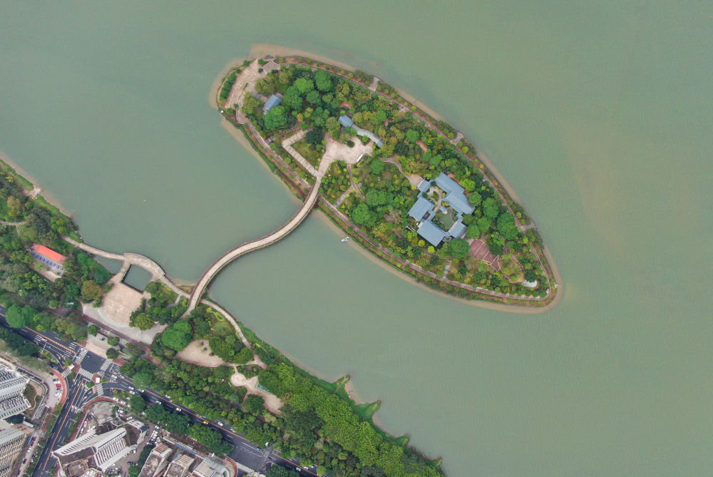 2021年4月8日拍攝的江心島書院所在的廣東清遠(yuǎn)清城區(qū)北江的江心島(無人機(jī)照片)。新華社記者 鄧華 攝