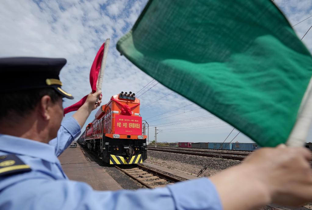 2023年6月11日,一列滿載煤炭的中歐(中亞)班列抵達(dá)中國鐵路北京局曹妃甸站。新華社記者楊世堯攝