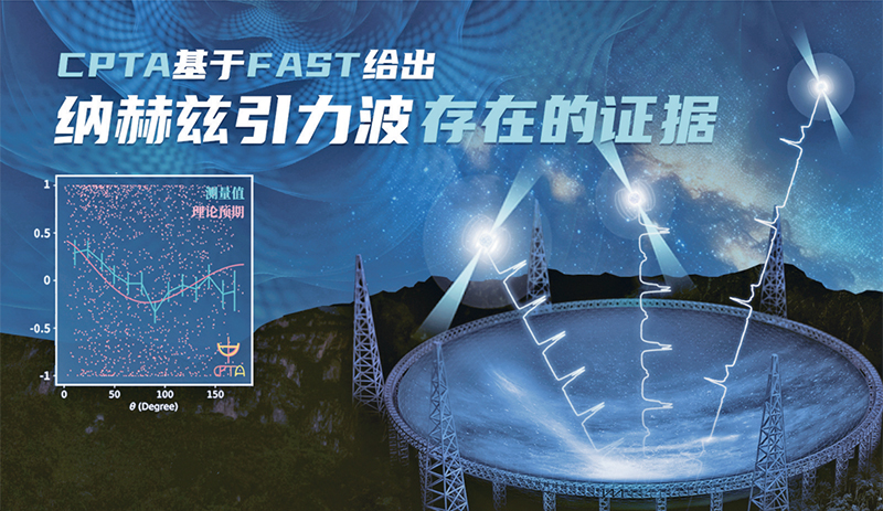 中國(guó)脈沖星測(cè)時(shí)陣列(CPTA)研究團(tuán)隊(duì),利用被譽(yù)為“中國(guó)天眼”的500米口徑球面射電望遠(yuǎn)鏡(FAST),發(fā)現(xiàn)納赫茲引力波存在的關(guān)鍵性證據(jù)。圖為這一發(fā)現(xiàn)的示意圖。 中國(guó)科學(xué)院供圖