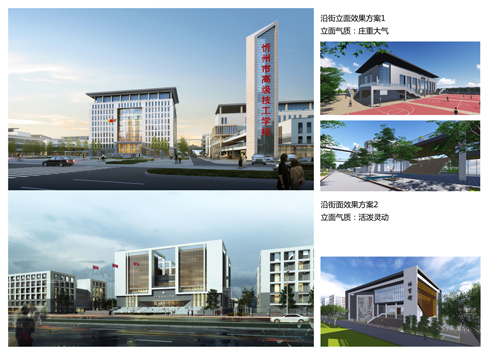 我們本著國匠精神-九宮格布局、山水格局-背山面水、四水歸堂的設(shè)計理念,團(tuán)結(jié)上學(xué)、振興技校的精神,努力將本項(xiàng)目打造成為忻州市的新名片,圓技校學(xué)生一個大學(xué)夢。我們注重整體空間的舒適性、藝術(shù)性,不強(qiáng)調(diào)過分統(tǒng)一。設(shè)計中注重細(xì)節(jié)處理和學(xué)生們行為模式的考慮;將環(huán)境氣氛和設(shè)施布置的更具有靈活性、親和力,適應(yīng)寬松、生活化的教學(xué)模式。