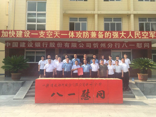 7月31日,八一建軍節(jié)來臨之際,忻州分行劉昱星行長攜紀(jì)委書記陳慶鵬、副行長趙彤、高級(jí)客戶經(jīng)理王平、副行長郝翀平及部分部門負(fù)責(zé)人前往空軍某部開展“軍銀攜手,共建同行”八一慰問活動(dòng),并遞交慰問信和慰問品。