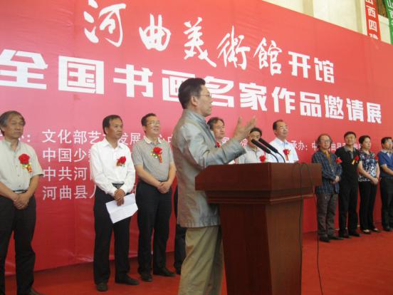 著名書畫家張旭光致賀詞 8月31日,河曲美術(shù)館開館暨全國書畫名家作品邀請(qǐng)展開幕儀式舉行。中國美術(shù)家協(xié)會(huì)主席劉大為題寫了館名。著名書畫家張旭光、專業(yè)畫家胡寶利專程從北京趕來祝賀。 河曲是“民歌二人臺(tái)之鄉(xiāng)”、“中國民間藝術(shù)之鄉(xiāng)”,更是美術(shù)創(chuàng)作基地、攝影采風(fēng)基地。著名畫家吳冠中曾深情地感嘆:這里是美術(shù)創(chuàng)作的金礦!值此金秋之際,由文化部藝術(shù)發(fā)展中心中國書畫院國畫院、中國少數(shù)民族文化藝術(shù)促進(jìn)會(huì)、河曲縣委縣政府共同主辦的全國書畫名家作品邀請(qǐng)展走進(jìn)河曲。展覽共邀請(qǐng)到書畫精品43件,作品題材豐富,花鳥、山水、人物、書法兼?zhèn)?,表現(xiàn)形式多樣,創(chuàng)作風(fēng)格或雄宏大氣、或典雅清麗?;顒?dòng)的舉辦,將對(duì)普及提升基層群眾文化品味、引領(lǐng)時(shí)代正氣、助力河曲發(fā)展起到積極作用,定會(huì)使“歌鄉(xiāng)”河曲的書畫水平再上一個(gè)新臺(tái)階。 美術(shù)館的開館投用,為促進(jìn)河曲書畫發(fā)展、擴(kuò)大美術(shù)藝術(shù)交流、繁榮社會(huì)主義文化事業(yè)搭建了新平臺(tái)。將在打造具有專業(yè)水準(zhǔn)現(xiàn)代美術(shù)館的基礎(chǔ)上,更注重突出其公益服務(wù)性,定期舉辦藝術(shù)講座、美術(shù)培訓(xùn),展現(xiàn)藝術(shù)與生活的美好,拉近藝術(shù)與大眾的距離,辦成服務(wù)大眾的文化藝術(shù)場(chǎng)館和展現(xiàn)河曲形象的對(duì)外交流窗口,為推動(dòng)文化強(qiáng)縣做出新貢獻(xiàn)。(賈金理 攝) (責(zé)任編輯:李冬梅) |