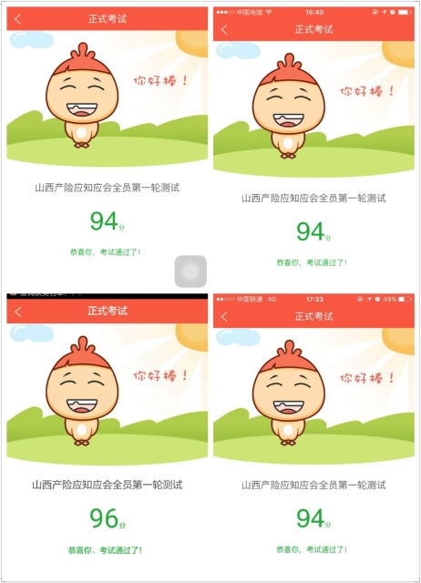 9月21日,平安產(chǎn)險河曲支公司積極響應(yīng)分公司及中支要求,組織全員在知鳥APP上參加“應(yīng)知應(yīng)會100問”第一輪考試,并以90分以上分數(shù)全員通過。